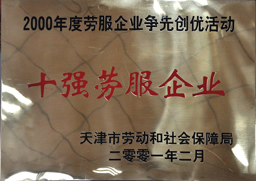1995年天津市勞動(dòng)服務(wù)公司頒布十強勞服企業(yè)