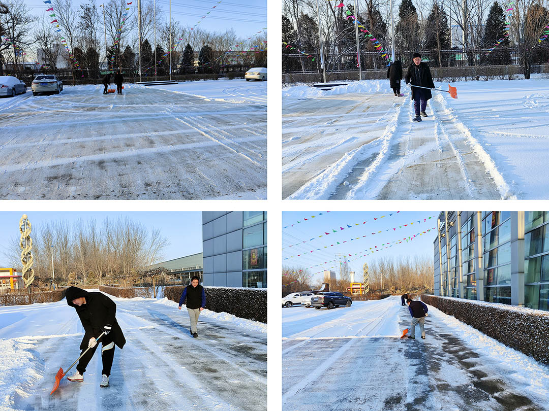 2月13日,虎年首場(chǎng)降雪如約而至,洋洋灑灑的雪花很快將安達集團各廠(chǎng)院路面覆蓋。集團各子公司以雪為令,立即行動(dòng)起來(lái)。各單位員工在相關(guān)領(lǐng)導帶領(lǐng)下,手拿鐵鍬、掃帚、簸箕等工具,對辦公樓門(mén)口和廠(chǎng)區內重要點(diǎn)位、路面進(jìn)行積雪大清掃。積雪的清除,為員工和車(chē)輛出入提供了安全保障。寒風(fēng)襲襲,盡管大家凍得手腳冰涼,但全體員工齊心協(xié)作,相互配合,一派熱火朝天的除雪場(chǎng)景,甚是鼓舞人心。
